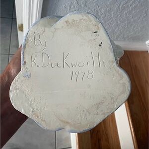 A Vintage Ceramic Dog Planter - Cream, light blue and Black