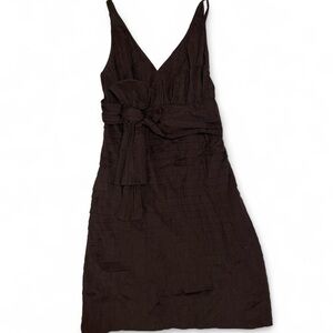 Brown mini dress with bow detail on the side. Marked size 2. 13" pit to pit (laying flat).