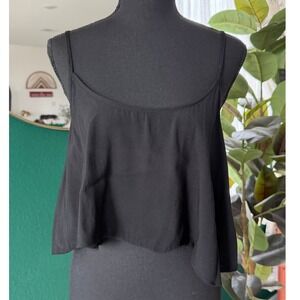 Black Halo Womens Black Viscose Crop Cami Tank Top Size 8 Flowy Romantic Goth