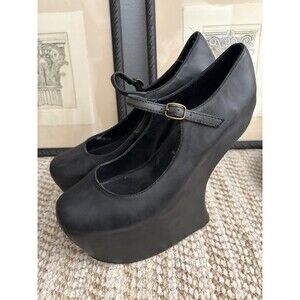The Jeffrey Campbell Night Walk Black Leather Havana Last Platform Heels in size 8M are stylish and edgy women's shoes with a round toe shape, Mary Jane closure, and ultra high wedge heel. The platform height is 5.5 inches, making them a trendy choice for those looking to make a statement. Made of suede with a black color, these heels feature a buckle detail and are from the renowned brand Jeffrey Campbell. They are perfect for adding a touch of sophistication to any outfit.
