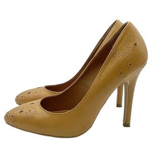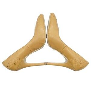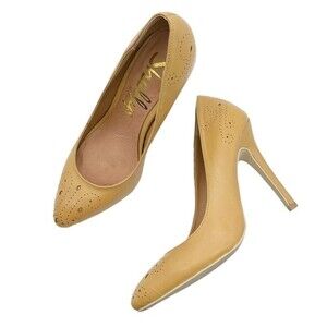 Shellys London Camel Leather Pump Perforated Tan Leather Heel Size EU 38 | US 7
