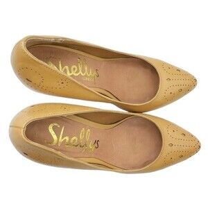 Shellys London Camel Leather Pump Perforated Tan Leather Heel Women’s Size 38 | 7