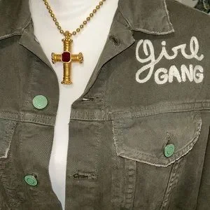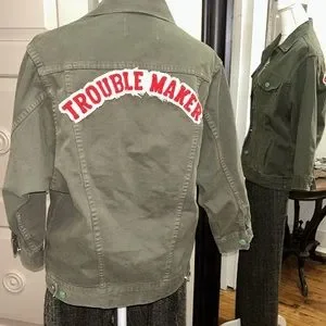 Sandrine Rose, Parisian designer, crafts this gorgeous, troublemaker jacket with girl gang embroidered on the front!