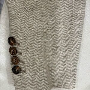 Elevate your style with this elegant Italian linen suit. Perfect for sophisticated spring or summer look. The fabric slightly shimmers gold/silver threads in the sun making it a very unique and beautiful suit.