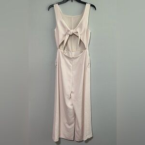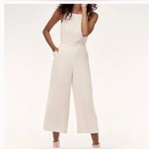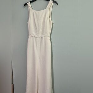 Chic off-white jumpsuit. Sleeveless with a wide-leg silhouette. Ideal for versatile styling.