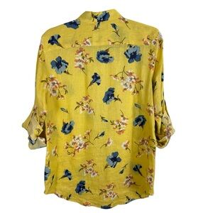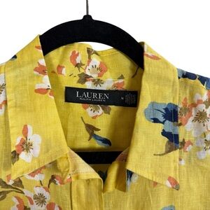 NWOT Lauren Ralph Lauren Shirt Floral Size M Yellow 100% Linen Blouse Button Up