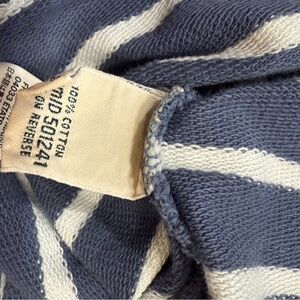 Stylish L.L. Bean sweatshirt. Features blue and white stripes. Comfortable and casual design. 100% cotton.