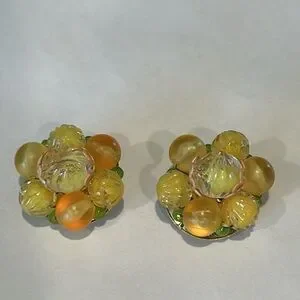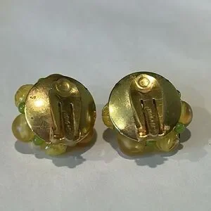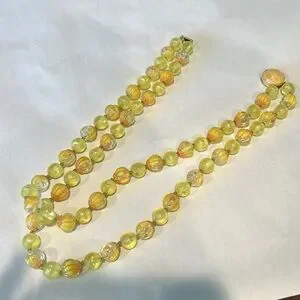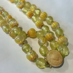 Vintage 1950s yellow round bead double strand necklace and matching earrings