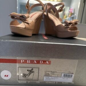Authentic Prada Nudo Patent Leather Bow Wedges