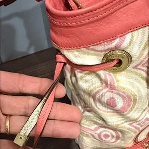 Coach set of 3 Coral and Cream shoulder bag wrestles , and card holder