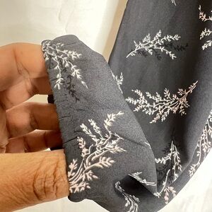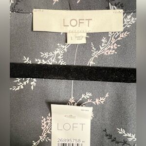 Brand new with tags LOFT wrap blouse in a soft charcoal gray with delicate pink, blue and white floral print. Features a flattering V-neck wrap front, adjustable tie waist for a cinched silhouette, and long sleeves with subtle puffed shoulders and elastic cuffs. Lightweight and feminine—perfect for work, brunch, or casual chic outfits.