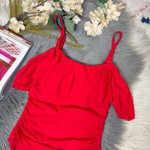 NWOT Tahari Red Ruffle One Piece Swimsuit Sample Ruched Tummy Control Sz S