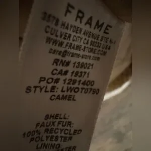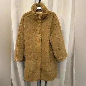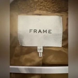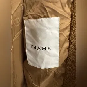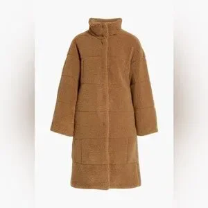 This FRAME coat features a quilted teddy fleece design, side slit pockets, full lining, and concealed snap fastenings through the front. It is crafted from mid-weight, non-stretchy fabric and should be dry cleaned.