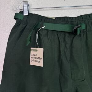 Features: REI Co-op. Nonfluorinated DWR finish for water repellency. UPF 50+ sun protection. Integrated webbing belt with buckle and elastic waistband. Zippered back pocket for secure storage. Lightweight, quick-dry, trail-ready hybrid design — "a trail essential for quick dips"