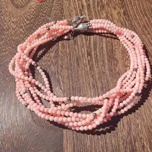 Jay King DTR mine finds 925 Sterling silver Angel Skin Coral 8 strand necklace