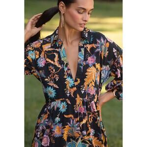 NEW NWT Anthropologie The Carolita Printed Tiered Shirt Dress by Celandine Sz S
