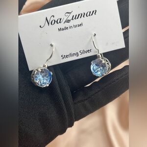 Sterling Silver Round Blue Stone Drop Earrings by Noa Zuman