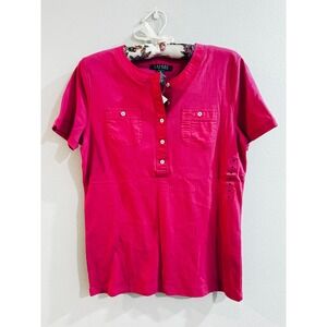 Lauren Ralph Lauren Pink Cotton Henley Short Sleeve Pocket Tee Shirt Medium New
