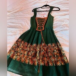 Beautiful green dirndl. Brand is Dirndl Stal. No size listed but measurements listed below (laying flat):