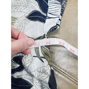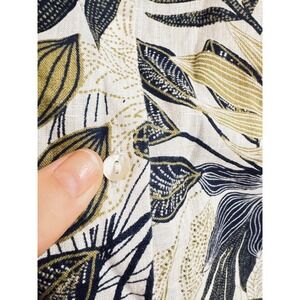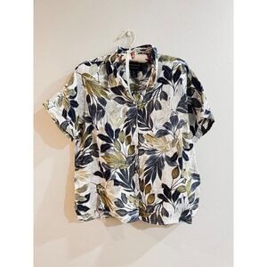 Tahari Womens 100% Linen Button Up Shirt Large Tropical Leaf Short Sleeve Top