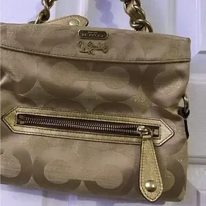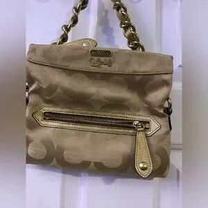 Stylish Coach clutch with bold gold chain. Perfect for evening outings.