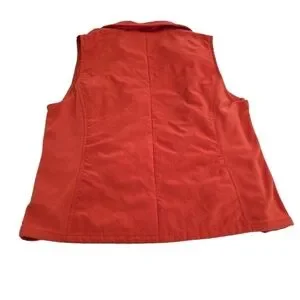 Vibrant coral vest with zip closure. Ideal for outdoor adventures.