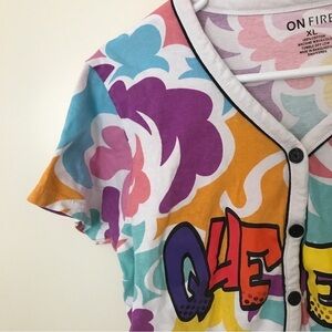 3/$15 on fire multi color queen logo baseball button down shirt