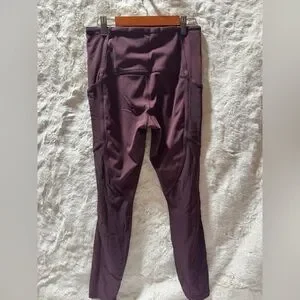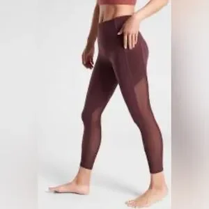 ATHLETA Leggings Women's Medium Burgundy Vitality Stash Pocket 7/8 S Tight Mesh