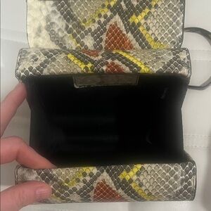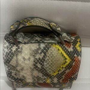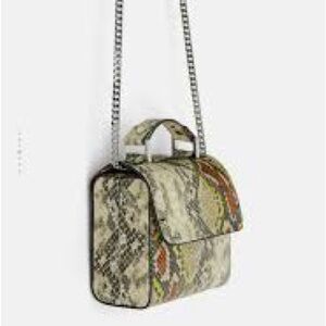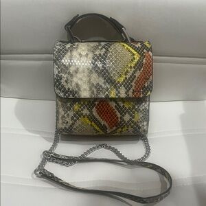 Elevate your style with this chic snake print crossbody bag. Featuring a striking combination of black, white, and orange, this bag is perfect for any occasion. Its sleek design and versatile colors make it a must-have accessory.