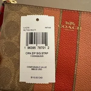 NWT Elegant Coach wristlet with pink and red stripes. Dark interior with card pockets. Ideal for daily use. *INCLUDES FREE MYSTERY GIFT✨