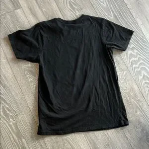 Black t-shirt featuring a colorful skeleton graphic. Perfect for casual wear.