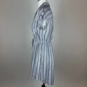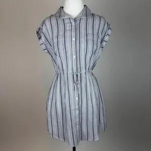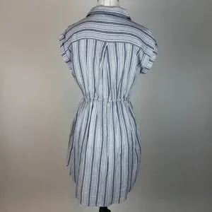 Japna Blue/White Striped Cotton Shirt Dress Size Medium Pockets Vacation Beach