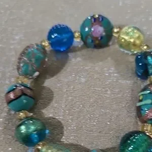 Murano bracelet features a vibrant green bead paired with elegant gold accents, perfect for adding a touch of sophistication to any outfit. One of a kind. Made in Italy. Like new