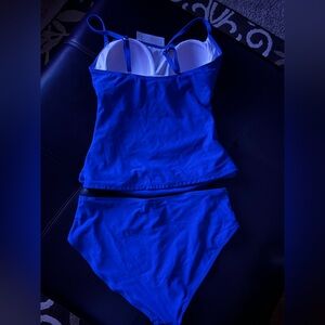 NWT Eomenie 2 piece tankini tummy control full coverage swimsuit. Size L. Bright blue color. SFPF home.