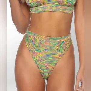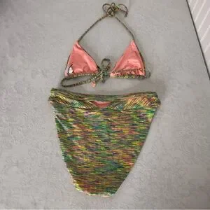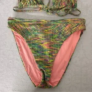 Isabella Rose Prismatic Triangle Bikini Top & Maui High Waist Swim Bottom Medium