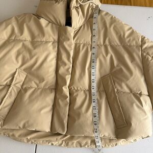 Zara Women Cropped Oversized Hooded Puffer Jacket in Tan