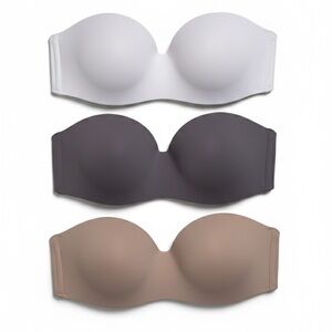 Experience comfort and style with this seamless strapless bra set. Perfect for any outfit, these bras come in white, gray, and tan.
