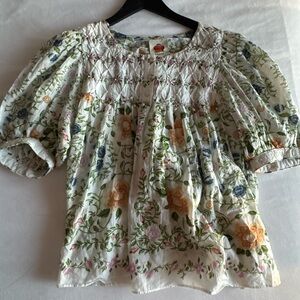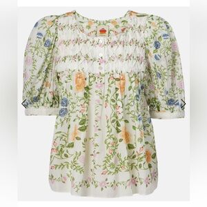 FARM RIO Folk Floral embellished cotton blouse