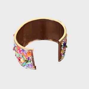 Multicolor Stone Embellished Gold Cuff Bracelet
