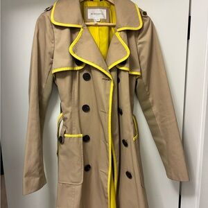 BCBGMAXAZRIA Tan Trench Coat with Yellow Accents M like new
