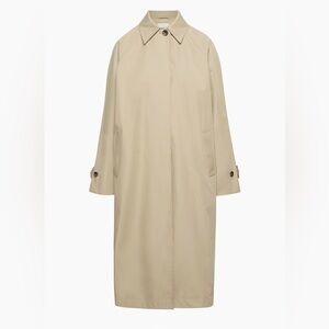 worn a handful of times with no discernible signs of wear. this is a relaxed-fit coat with front welt pockets, adjustable sleeve tabs and raglan sleeves. it’s expertly tailored with lightweight, water-repellent cotton twill that has a luxe, silky feel.