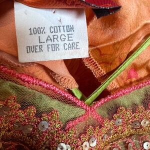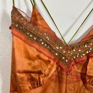 Whimsical 90s Y2K Midi Slip Dress Size M Paisley Satin Sequin Mesh Trim Orange