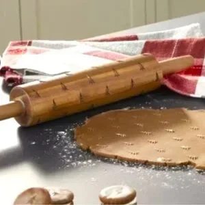 Made from acacia wood, this rolling pin features long handles at the sides to allow you to effortlessly roll it over cookie dough. Best of all, it features allover engraved Christmas tree patterns that easily imprint onto your rolled dough to let you cut and bake sweet, festive-style cookies.