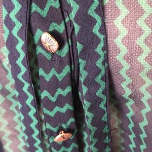 Maeve navy and green zigzag pattern blouse, sheer material metal buttons size S