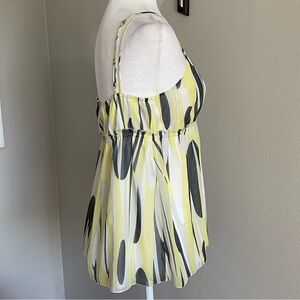 Chic camisole with a yellow and black abstract design. Ideal for summer wear.