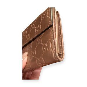Gucci Guccissima Lovely Heart Metallic Pink / Rose Gold Leather Wallet