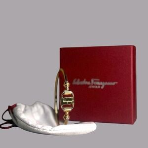 Elegant gold bracelet by Salvatore Ferragamo. Features signature design. Comes with branded box and dustbag.
