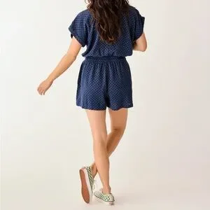 Super cute & comfy romper! Elastic waistband with double drawcord. Back keyhole. Excellent used condition… from my own closet. Purchased summer 2025… worn a handful of times. 💙