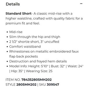Rock Revival Buckle Women's "Nadine" Mid-rise Stretch Cutoff Short Blue Denim, Size 25.