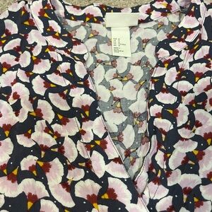 In great shape! Beautiful floral print with a v-neck line! Material is very lightweight! Length shoulder to hem is 36 inches! Perfect for spring and summer! Offers welcome!